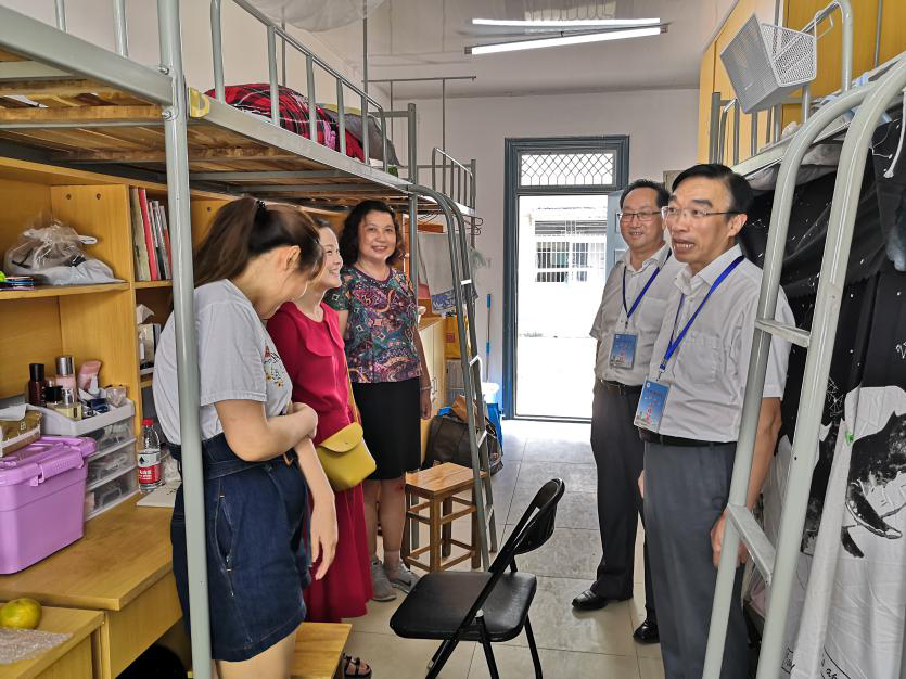 9月6日下午,党委副书记、院长孙道胜,副院长姚本先在研究生处处长胡玉娟的陪同下,走访研究生迎新报到点和研究生宿舍“雅苑”,深入了解各项迎新工作的开展情况,对奋战在迎新第一线的广大师生表示慰问,对刚入校的研究生及家长表示欢迎。走访期间,院领导一行还实地查看了学院在读研究生的住宿等情况。