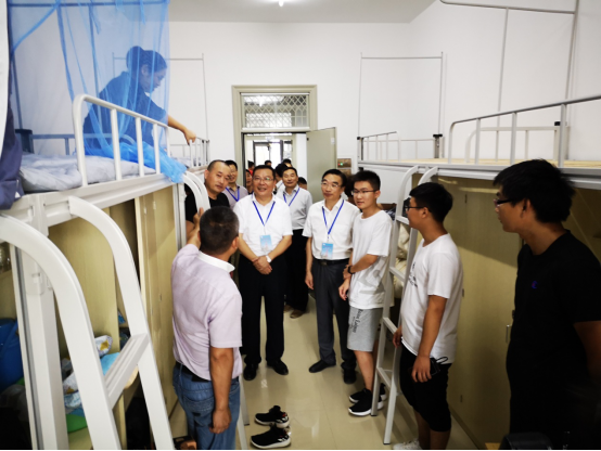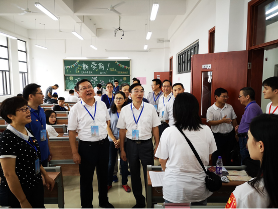 党委书记徐成钢,党委副书记、院长孙道胜,党委副书记、副院长李进华,副书记吴昕春,副院长谢阳群,副院长姚本先,副院长曹卓良带领相关职能部门负责人深入二级学院报到点和绿色通道办理点、卧具发放点、学生宿舍,了解新生报到情况,向家长询问报到办理情况。