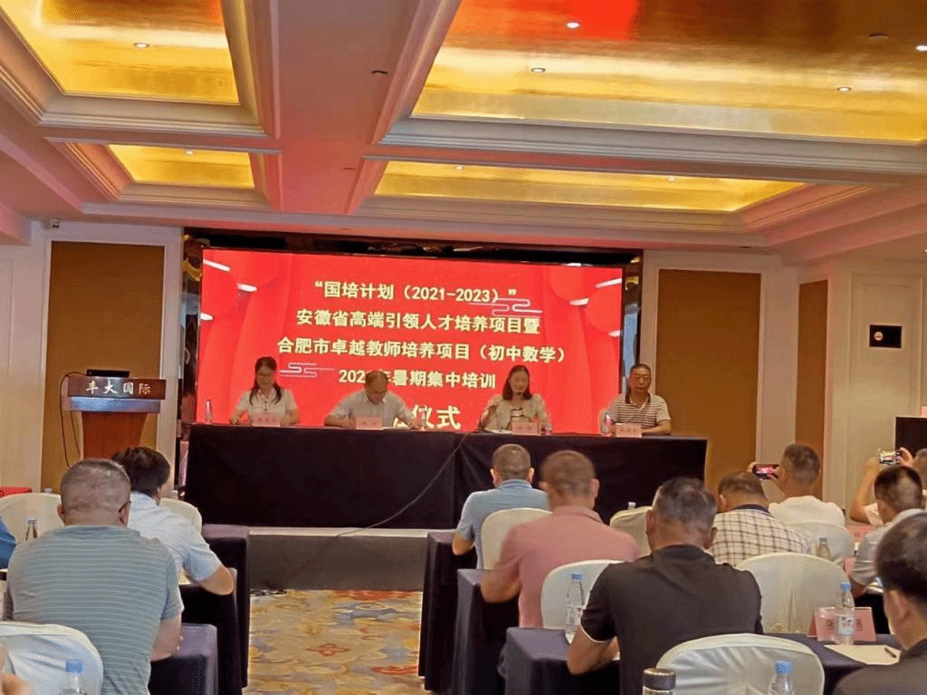 本网讯 7月26日上午,安徽省“国培计划(2021-2023)”——安徽省高端引领人才培养项目和合肥市初中卓越教师培养项目(初中数学)暑期集中培训在合肥市经开区丰大国际大酒店顺利举行开班仪式。数学与统计学院党委书记穆娟、副院长杨刘以及本次国培项目负责人张新全教授和来自全省各地的全体参培学员参加本次开班仪式,仪式由国培班主任赵玉华主持。