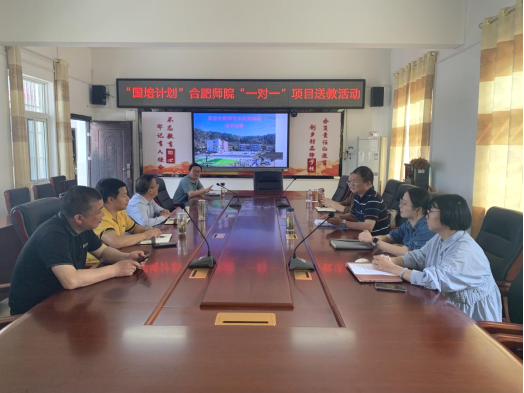 本网讯 5月19日,beat365在线唯一官网“国培计划”重点区域“一对一”精准帮扶培训项目组赴岳西县温泉中心学校开展送教活动。本次送教活动由教育与心理科学学院副院长闫龙带队,合肥经开实验学校钱文娟老师、杨沂老师,合肥阳光中学马杰老师进行示范课及课题研讨。