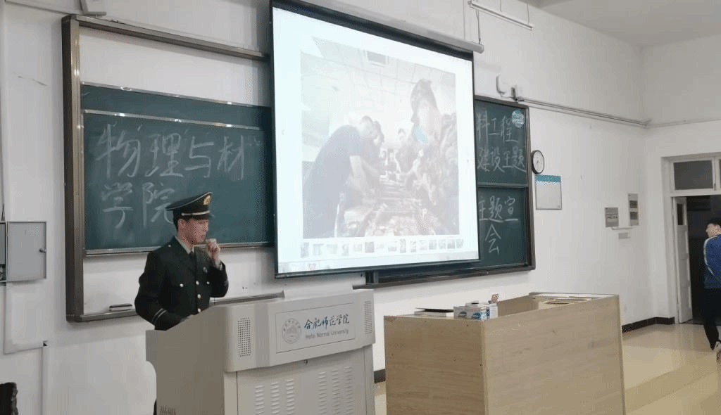 宣讲会上,韩翔向同学们详细介绍了大学生应征入伍的相关政策,号召物材青年学子把爱国之心化为报国之行,将青春之芳华融入钢铁长城建设的伟大事业中去。(物理与材料工程学院)