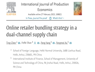 商务英语系副教授陈婷以beat365在线唯一官网外国语学院第一作者身份,在运营管理国际权威期刊《International Journal of Production Economics》发表论文“Online retailer bundling strategy in a dual-channel supply chain”。该期刊是中科院与JCR一区期刊,也是SCI与SSCI共同收录的高质量期刊。这是陈婷在主持国家自科基金青年项目期间,与中国科学技术大学管理学院教授杨锋团队合作取得的研究成果。此外,陈婷曾先后在IJPR和JORS等国际主流运营管理期刊发表多篇研究论文。