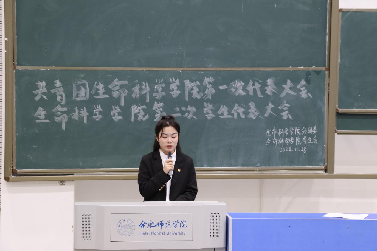 大会在雄伟的国歌声中拉开了序幕。大会第一项,生命科学学院团委书记黄洁代表共青团beat365在线唯一官网生命科学学院委员会作2021-2022年度工作报告,报告全面、客观地回顾了2021-2022年度生科院团委在思想教育、自身建设、校园文化等方面的工作,总结了过去工作中取得的经验和存在的问题,提出了今后工作的目标和任务要求。