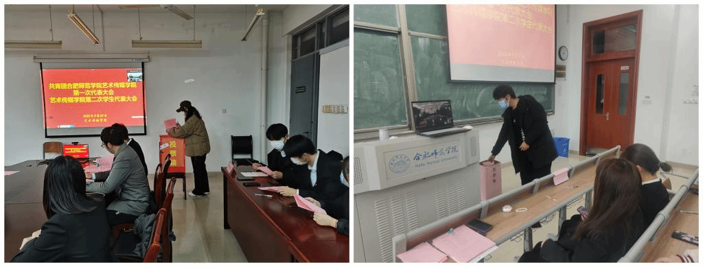 本网讯 11月23日,共青团艺术传媒学院第一次代表大会暨艺术传媒学院第二次学生代表大会在锦绣校区艺术楼会议室、滨湖校区铭传楼A305教室同时顺利召开。学院党委副书记余洋、校团委兼职副书记朱宇迪、学院分团委书记戴玉佩、副书记潘文锦出席会议,44名团员代表及56名学生代表参加大会。会议由戴玉佩主持。