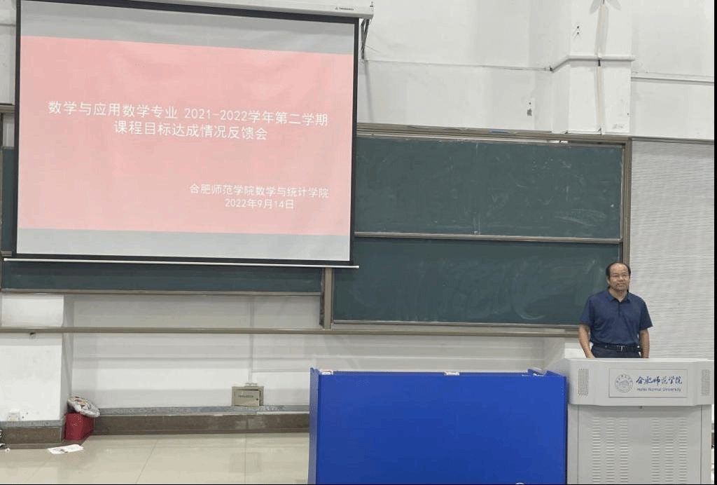 本网讯 为进一步落实师范专业认证标准,完善课程教学质量评价机制,保证“学生中心,产出导向,持续改进”专业认证理念落到实处,9月14日下午,数学与统计学院在逸夫楼A106、西阶1、西阶2同时召开2021-2022学年第二学期数学与应用数学专业课程目标达成情况反馈会。数学与应用数学专业负责人王家正教授、数学系系主任许和乾老师、数学与应用数学专业2021-2022学年第二学期全体任课教师、学院质量小组成员以及2019级、2020级和2021级数学与应用数学专业的全体学生参加会议。