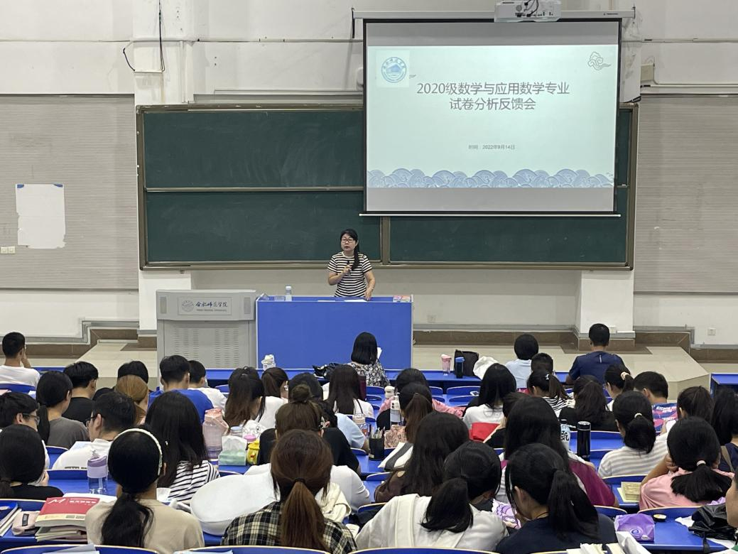 本次反馈会是数学与统计学院建立常态化学生学习效果反馈机制的一项重要活动,也是落实学生学习效果反馈机制的重要举措之一。反馈会上,各授课教师先告知学生上学期该课程学习中存在的问题和考试中存在的问题,然后结合上学期课程考试试卷分析及课程目标达成度情况分析,从培养目标、毕业要求、课程目标、课程评价要素等方面进行详细讲解,对同学们今后的专业学习提出了有针对性的建议,并与同学们面对面建立长期联系方式,以便今后对各课程学习持续帮助。(数学与统计学院质量小组)
