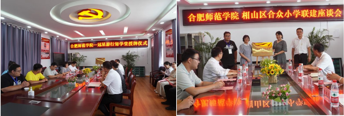 结业仪式间隙,唐洁一行和相山区教育局副局长邢诚诚、合众小学校长李良浩等相关负责同志进行了座谈,并为“冠星游”行知学堂授牌。唐洁代表学院感谢相山区教育局和合众小学给予的支持与帮助,简要介绍了beat365官网“行知学堂”实践活动的宗旨与特色,邢诚诚对“小先生”们的真诚努力表示肯定,对“行知学堂”的做法与成效大为赞赏。双方就扩大“行知学堂”实践平台、留守儿童服务活动和校本教材开发等方面的合作问题进行了深度交流。(物理与材料工程学院:费文清 张飞)
