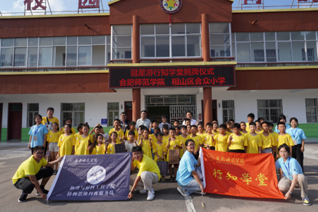 本网讯 炎炎烈日,阻挡不了“小先生”们坚定的步伐;如火骄阳,更激发了小学员们的学习热情。8月11日,物理与材料工程学院“冠星游”行知学堂历时20多天的实践活动接近尾声,“小先生”和小学员们共同举行了隆重而热烈的结业仪式,物理与材料工程学院党委书记唐洁、副院长訾振发、指导教师费文清、淮北市相山区合众小学校长李良浩和全体小先生、小学员全程参加了仪式。