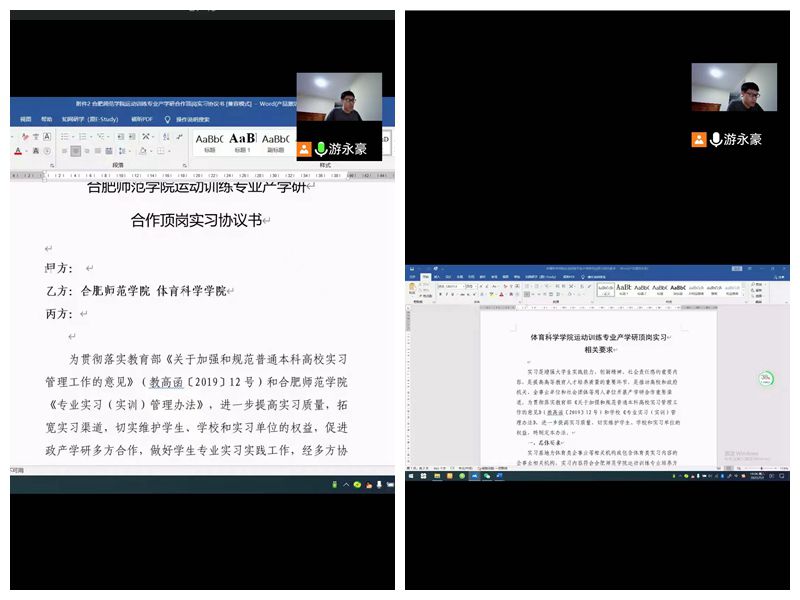 通过两次线上会议,同学们明确了顶岗实习、产学研工作的安排和重点,对接下来的顶岗实习有了更深刻的认识与充分的信心。(体育科学学院运动训练系)