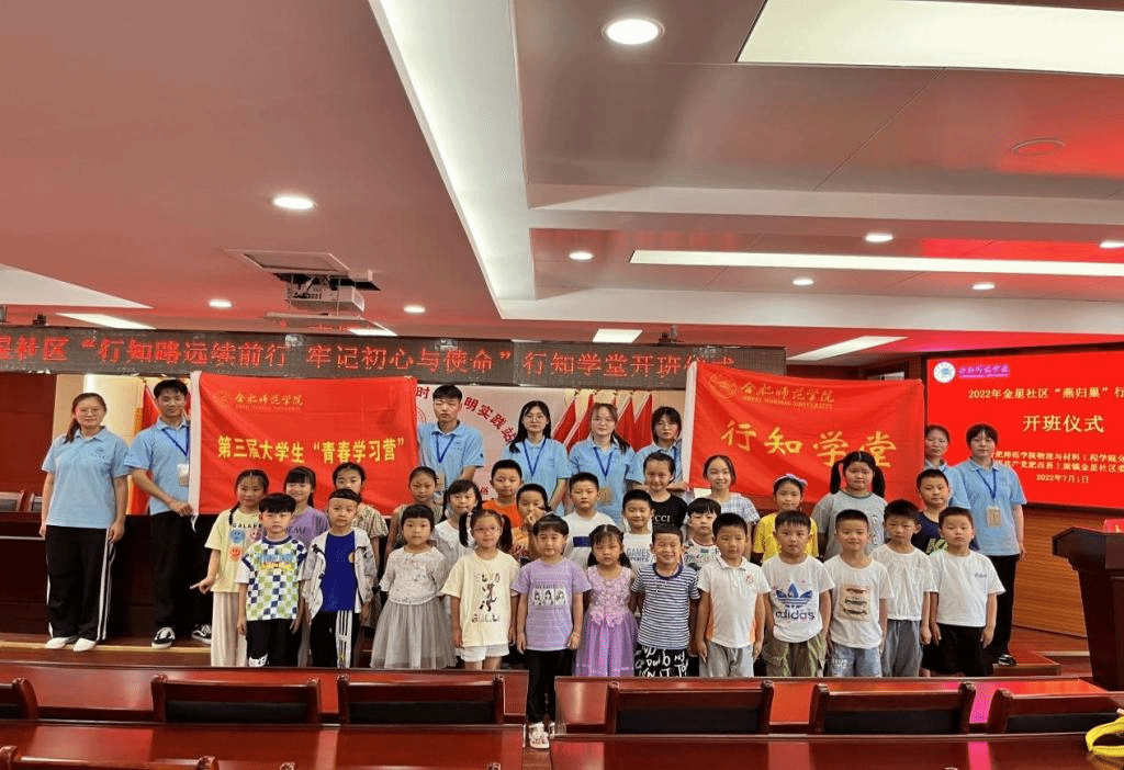 本网讯 服务留守儿童,践行行知精神,共筑青春梦想。7月1日下午,物理与材料工程学院“燕归巢”行知学堂在肥西县上派镇金星社区正式开班。金星社区主任殷莺与beat365官网物理与材料工程学院、化学与化工学院、生命与科学学院共计8名行知学堂小先生、全体小学员及家长共同参加了开班仪式。