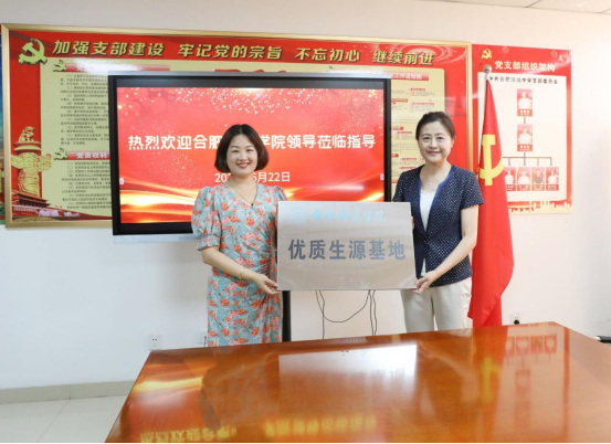 为做好此次招生宣传工作,马克思主义学院分别成立教工和学生2支招生宣传队。6月22日,教工宣传队由总支书记吕田力、副院长陶有浩带队前往合肥锦绣中学进行宣传。在与锦绣中学管理团队的座谈会上,吕田力感谢合肥锦绣中学近年来为马克思主义学院思想政治教育专业提供的优质生源,希望有更多的合肥锦绣中学的优秀考生报考思想政治教育专业。座谈会结束后,举行了“beat365在线唯一官网优质生源基地”授牌仪式。