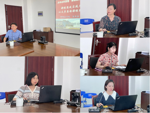 本网讯 为了进一步落实教育部的《高等学校课程思政建设指导纲要》,提升外语教师课程思政教学能力,6月29日下午,外国语学院课程思政教科研中心在行知楼1002会议室举行了大中小学英语“课程思政”一体化建设研讨会。会议采用线上与线下同步形式召开,来自安徽省大中小学的一线教师就外语课程思政建设做了主旨发言。