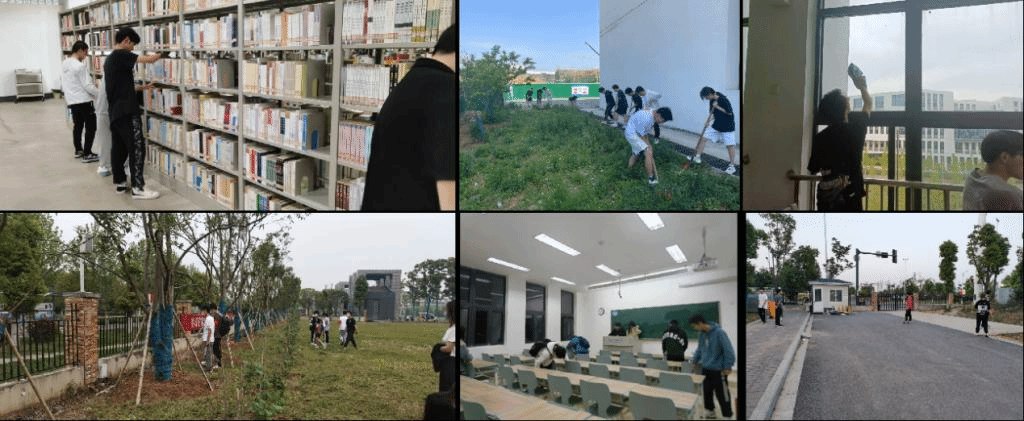 在教师引导下,同学们或积极参加校园清洁,帮忙除草打扫、垃圾清理;或整理宿舍、学院会议室,营造干净舒适的寝室和办公环境;或在学校图书馆整理书籍,打扫卫生,为同学们提供资料查阅、书籍借用等指引性服务,创造良好的图书馆阅读和学习环境;或在校园内担任巡逻志愿者,做好校园安全巡逻、口罩正确佩戴提醒等工作,保障校园安全等。同学们在劳动中践行责任与担当,体验劳动精神、感悟劳动之美。