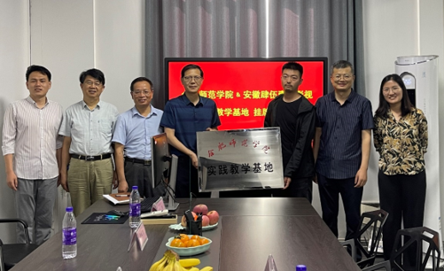 本网讯 6月21日下午,文学院党委书记李旺生、院长曹小云、中文系党支部书记张登林、主任杨增宏一行赴安徽肆伍壹拾影视文化传播有限公司调研并为“实践教学基地”揭牌。