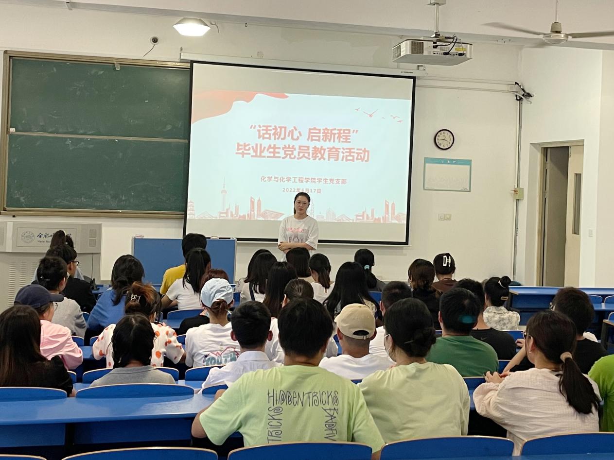 本网讯 6月17日,为庆祝中国共产党成立101周年,迎接党的二十大胜利召开,进一步激发学生党员传承和弘扬伟大建党精神,激励广大学生党员奋发有为、建功立业,发挥党员的先锋模范作用,化学与化学工程学院学生党支部开展庆祝建党101周年系列活动,制药工程系学生党支部、化学教育系学生党支部全体党员参加活动,活动由制药工程系学生党支部汪颖主持。