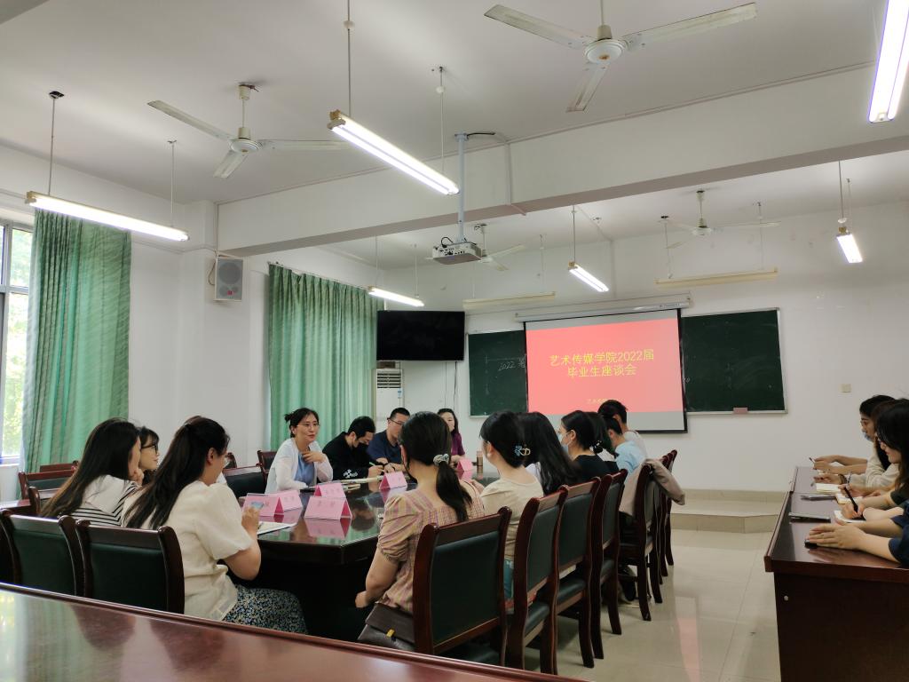 本网讯 6月14日下午,艺术传媒学院在艺术楼202室召开2022届毕业生代表座谈会。院党委副书记沙渺、学院6个专业教师代表、毕业班全体辅导员及各专业毕业生代表参加此次会议。