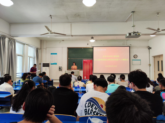 本网讯 为进一步强化学风建设,持续提升就业质量,凸显优秀朋辈的示范作用,6月10日,化学与化学工程学院在锦绣校区逸夫楼A105教室召开2022届考取硕士研究生先进个人表彰大会。学院党政领导出席会议,各系(中心)主任、指导教师代表、毕业班辅导员、83位考取硕士研究生的毕业生参加会议。会议有学院党委副书记、院长董华泽主持。