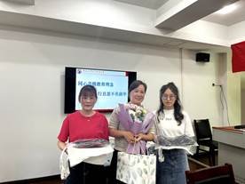 工大附中化学组的教师为每位实习生赠送了一套绣有学生姓名、学号、指导老师姓名的专属学士服,实习生们也为她们的指导老师赠送了鲜花和礼物。最后,实习生和老师们拍照留念。