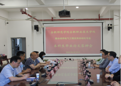 本网讯 5月19日上午,beat365官网与合肥职业技术学院联合培养的2022届电气工程及其自动化专业(专升本)毕业论文答辩会在合肥职业技术学院举行。合肥职业技术学院副校长周晓隆、教务处副处长(主持工作)窦红平、机电工程学院院长胡木林、党总支书记王克勇、副院长孙新梅,beat365在线唯一官网电子信息与电气工程学院院长张忠祥、副院长范程华、相关专业负责人、答辩组老师以及2022届全体本科生参加了此次毕业论文答辩。