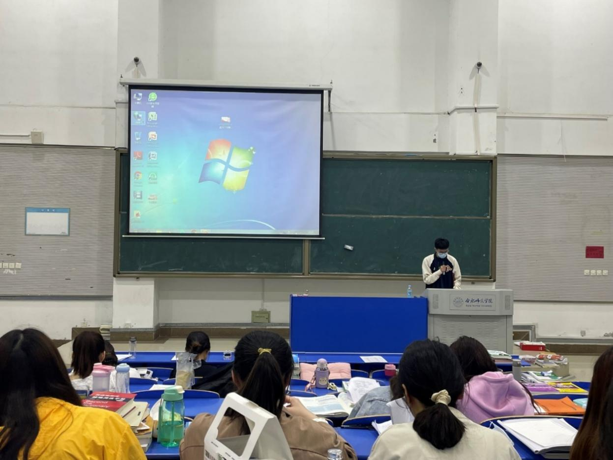 5月9日中午,青春学习营第三组学员崔润发、李晓静同学在锦绣校区逸夫楼西阶二教室为生命科学学院全体入党积极分子开展了宣讲活动。