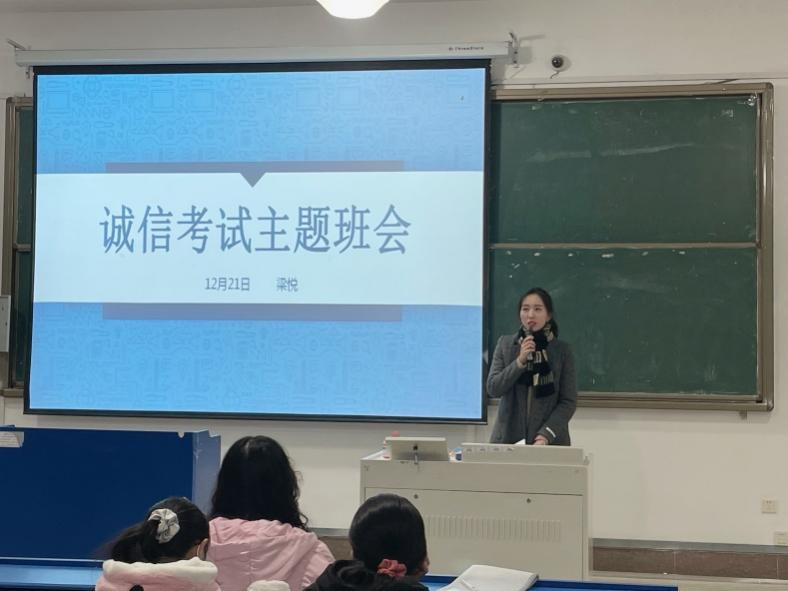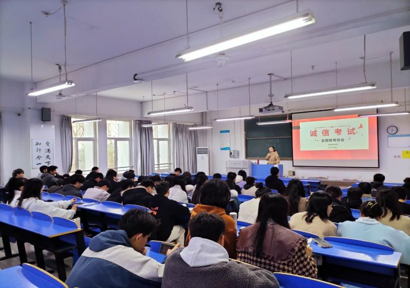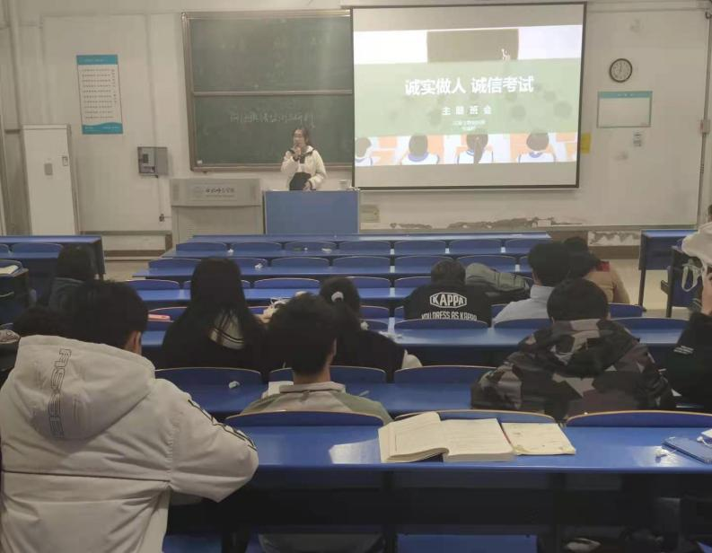 班会中,辅导员向同学们强调诚信考试的重要性,引导同学们以积极的心态备战应考,严肃考试纪律。并带领大家学习学生手册上有关考试违规的相关管理办法和条例(《国家教育考试违规处理办法》、《beat365在线唯一官网学生考试违规处理》等),组织签订《诚信考试承诺书》。