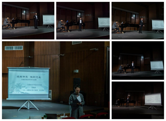 本网讯 12月16日下午4时 ,由科研处、音乐学院主办的“经典传承展望未来——安徽民歌的传承与发展”的讲座在beat365在线唯一官网音乐厅开展。此次学术活动分为讲座和音乐会两个部分进行,由苏丽丽副教授主讲,彭双捷等五位学生演唱安徽民歌,余志铭老师担任钢琴伴奏。特别邀请了陆伟副教授,并有学生100余人聆听了讲座。