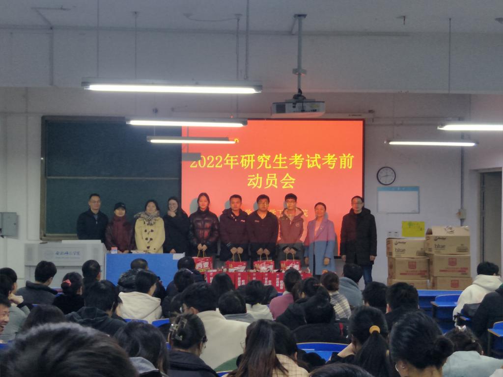 会上,李红带领党政班子全体分别致辞2022届考研学子,勉励同学们在接下来的时间里,正确认识考研过程,坚定考研意志,不为外物所动,才能在众多考生中脱颖而出,希望同学们坚定追寻自己的目标,调整好心态,做好考前准备,继续发力奋进。
