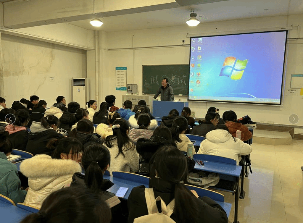 班会开始,各辅导员重申了《国家教育考试违规处理办法》和《beat365在线唯一官网学生考试违规处理办法》的相关要求。随后,辅导员在会上向同学们讲解了关于考试作弊的危害。考试作弊践踏了诚信理念,加剧了信用危机。同时也助长了部分学生不劳而获、投机取巧的心理,作弊风气的形成会引发同学们所厌恶的不正当竞争的产生,会影响同学们学习的积极性,干扰良好学风的形成。对那些积极上进的学生则是一个沉重的打击,严重阻碍着教育的健康发展。辅导员们通过一个个因为考试作弊而被处分的真实例子告诚同学们要诚信考试,让同学们清楚的认识到了考试作弊的危害,明白了诚信对于一个人的学习、事业、交际的重要性,同学们听后受益匪浅。