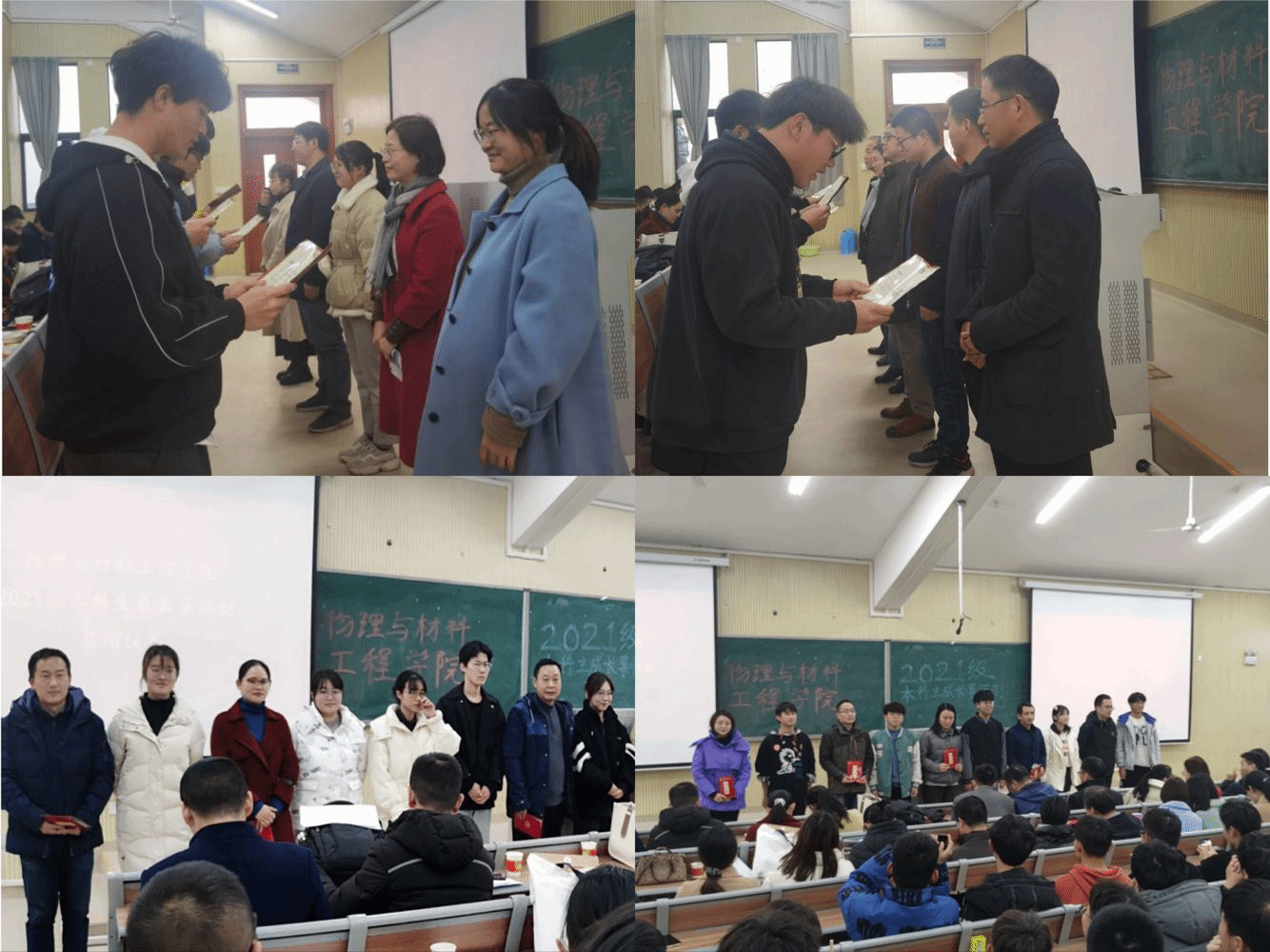 本网讯 12月1日下午,物理与材料工程学院在滨湖校区铭传楼A101举行了隆重的拜师仪式,正式启动2021级本科生成长导师制。学院全体教师和2021级全体学生参加仪式。仪式由党委副书记吴震主持。