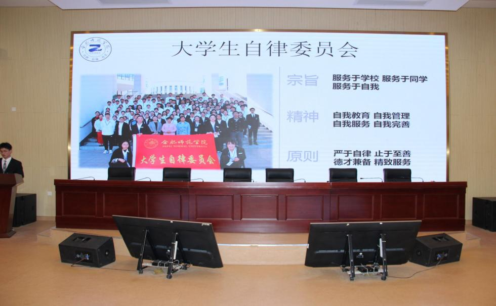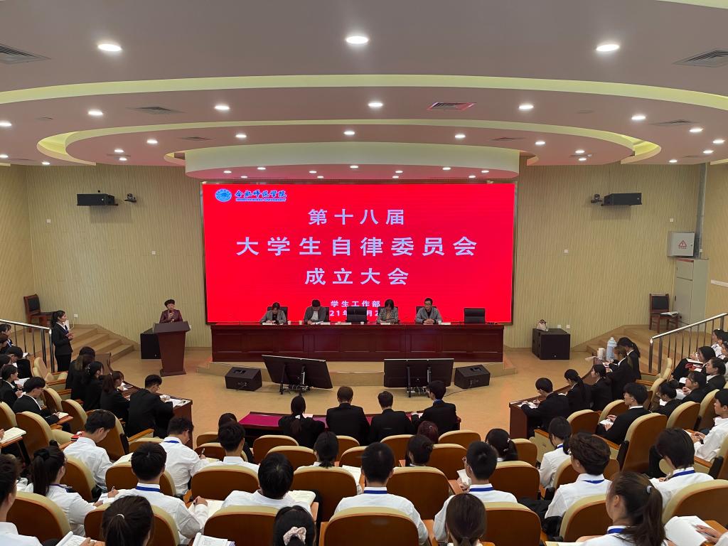 本网讯 10月26日下午,第十八届大学生自律委员会成立大会在滨湖校区刘铭传楼学术报告厅举行。学生工作部部长陆涛,副部长刘艳,大学生自律委员会指导老师葛畅、学生工作部韦小龙、吕礼足出席会议,第十八届大学生自律委员会全体成员参加。大会由大学生自律委员会副主席张卓佳主持。
