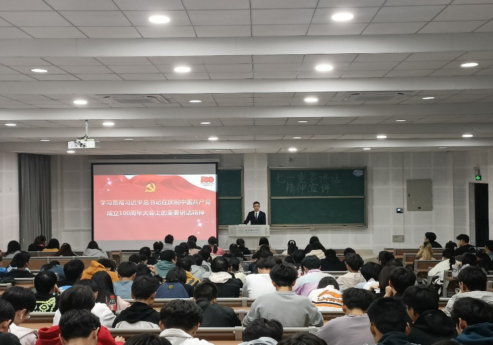 本网讯 为进一步落实“学党史,强信念,跟党走”学习教育工作安排,引导青年学生学习贯彻习近平总书记“七一”重要讲话精神,10月23日晚,计算机学院于滨湖校区博学楼A108开展习近平总书记“七一”重要讲话精神青年学生宣讲活动。本次活动邀请校青年宣讲团成员陈玺衡同学为我院学生进行主题宣讲。