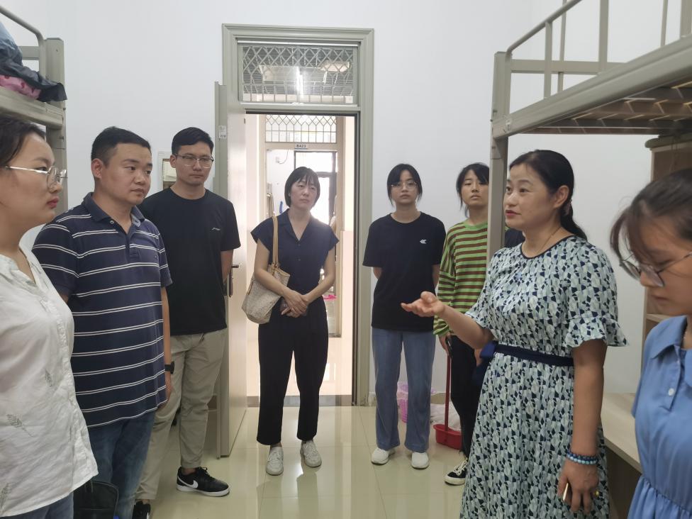 下午4点,教师教育学院党委书记穆娟和全体辅导员老师深入学生宿舍,询问新入校适应情况,对新生的到来表示热烈欢迎,穆娟叮嘱同学们,各项事情安顿好了,要给父母打个电话,让父母安心放心,提醒同学保管好财物,防止上当受骗,希望同学们尽快调整状态,尽快适应大学的生活和学习。