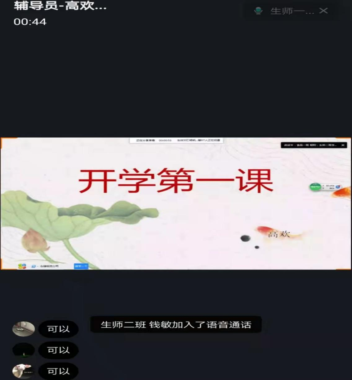 本网讯 新学期伊始,为了让同学们在新学期中有新的面貌和目标,生命科学学院2019级辅导员高欢于8月31日晚,组织2019级全体同学开展线上“开学第一课”主题班会,会议从防电信诈骗、学风建设、校园安全等方面展开。