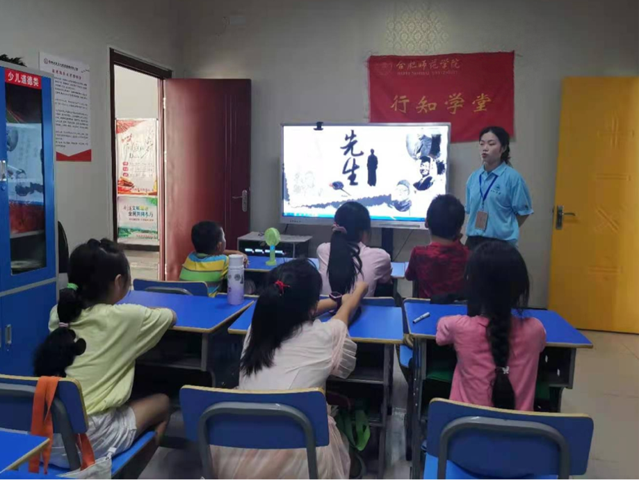 该学堂由2019级生物技术专业的徐欣荣、尤洁、钱雨欣、李琴四位“小先生”共同创办。四位来自无为的“小先生”一致决定将“行知学堂”带到家乡,“小先生”们根据自身特长爱好开设了暑期安全教育、党史学习教育、手工制作、音乐、趣味英语、绘画、朗诵会等多项趣味课程。“小先生”们提前谋划,制定了详细的活动计划,内容涵盖课业辅导、兴趣培养、情感教育、心理辅导、素质拓展等多方面,带给孩子们一个充实而有收获的暑假。