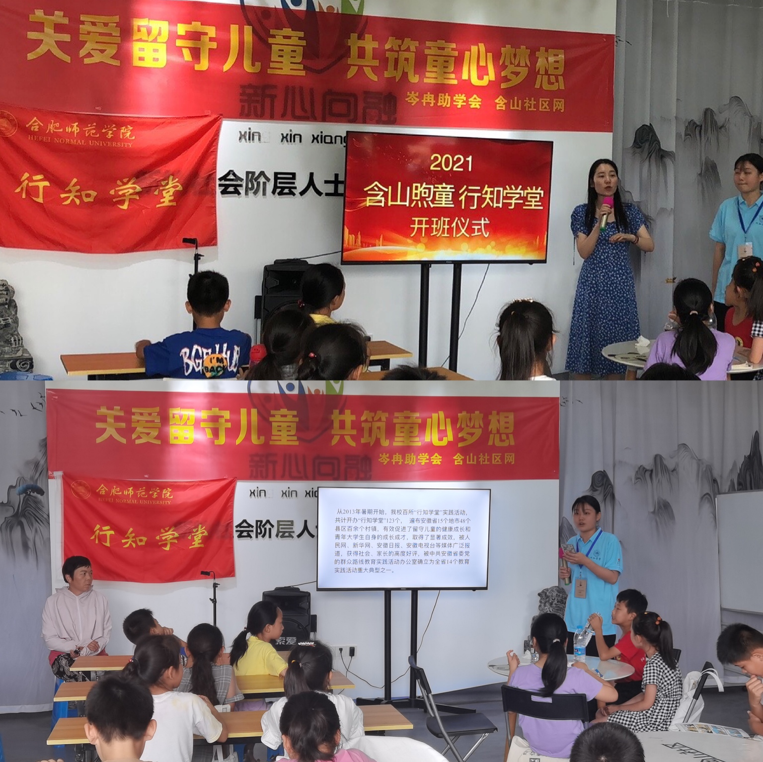 含山煦童行知学堂是艺术传媒学院行知学堂实践活动第一次落地含山县,联合含山县委统战部、共青团含山县委、含山县新时代文明实践中心、含山县妇联共同举办。本次实践活动为期20天,设置了红色教育、创意美术、韵律操、趣味英语、扎染、形体走秀、书法、手工、音乐、消防演练实践等多项课程与活动,以期通过多形式的教学内容,开拓小学员们的视野,促进“小先生”与小学员们之间的感情,丰富留守儿童的假期生活。(艺术传媒学院:潘文锦)