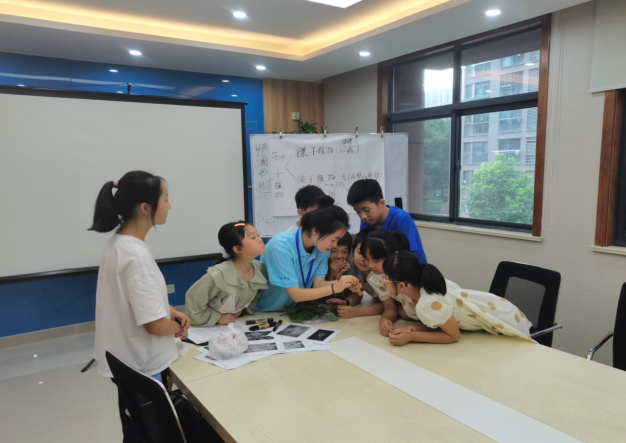 7月13日,邓美妮讲授的“认识植物总纲”正式开启了美虹行知学堂的第一课。随后陆续开展的课程还有动物教学、街舞教学以及音乐教学,管翔宇、叶寒、潘嘉伟三位“小先生”都做了充分的教学准备,针对十几名小学员的情况选择合理的教学方式,帮助学员们在轻松活泼的环境中增长知识。