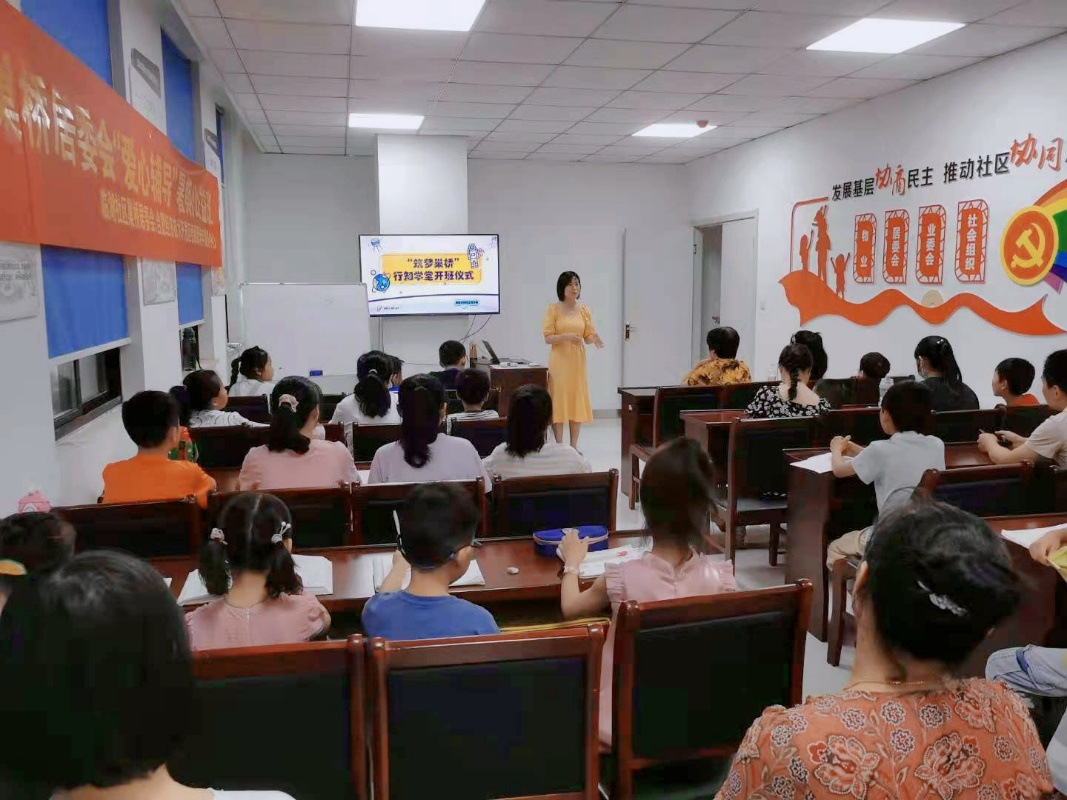 仪式由王梦月同学主持,她向小学员及家长介绍了学校的基本情况及本次行知学堂的具体课程安排。随后巢桥社区居委会副主任周玥发表讲话,她对筑梦巢桥行知学堂顺利开班表示祝贺,对行知学堂“小先生”们表示了热烈的欢迎和衷心的感谢,希望学堂小学员们珍惜宝贵学习机会,度过愉快充实的暑假。