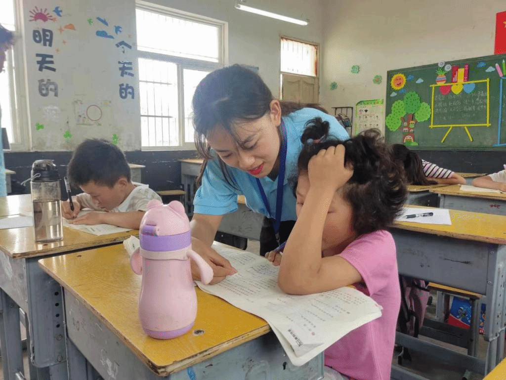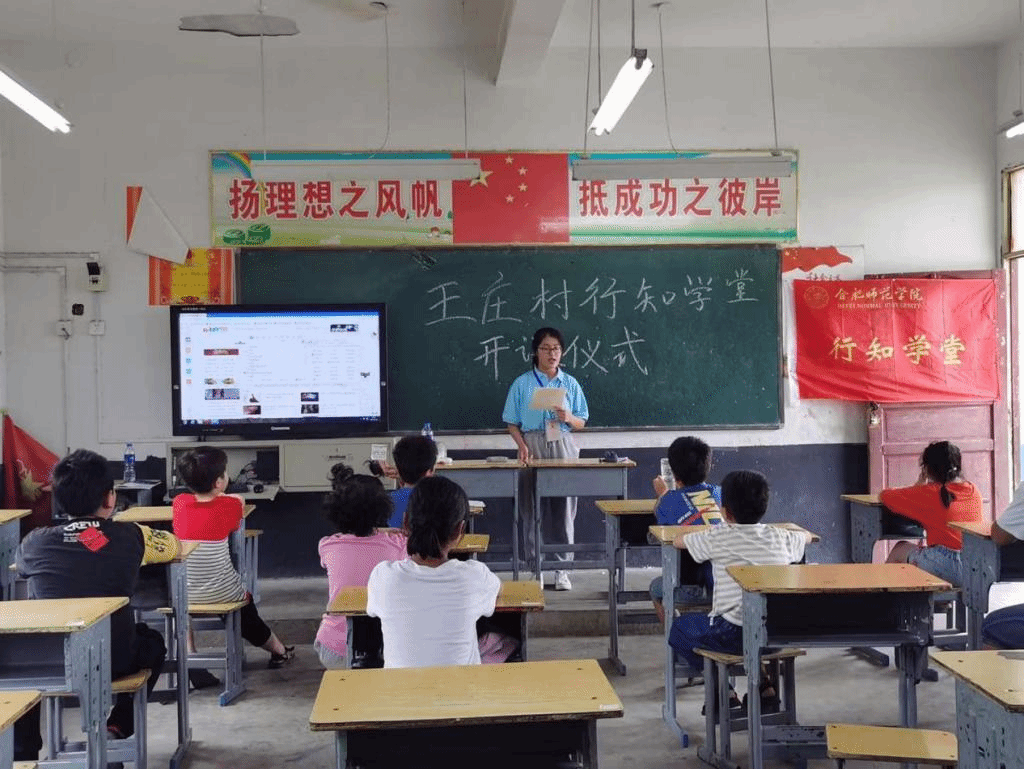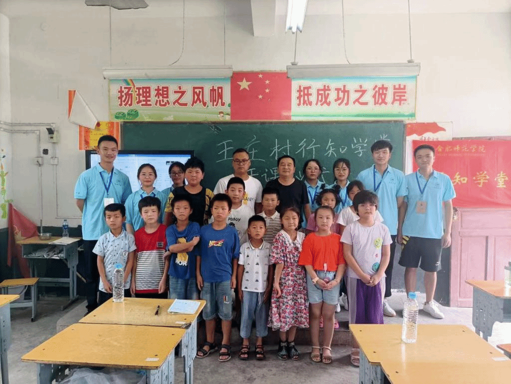 本网讯 烈日炎炎,骄阳似火。beat365在线唯一官网生命科学学院的8名大学生冒着酷暑、背起行囊,怀揣着“爱满天下,知行合一”的校训走进了学校定点帮扶村阜阳市颍东区口孜镇王庄村。本次暑期“行知学堂”实践活动得到了村委会和汪庙小学的大力支持,并于7月12日上午8点在汪庙小学教室举行了开班仪式。王庄村党总支书记武峰、汪庙小学校长赵亮、8名“小先生”和17名小学员参加了启动仪式。