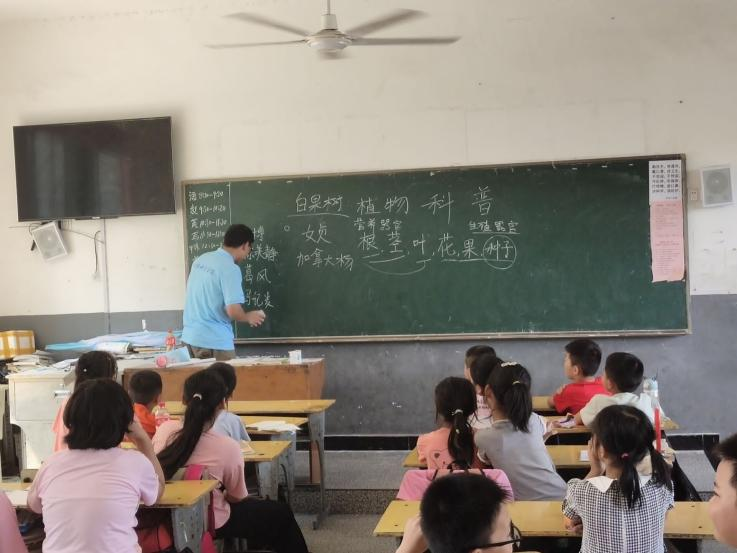 beat365在线唯一官网生命科学学院2020级生物科学师范专业的6位“小先生”积极响应团中央、团省委和学校的号召,顶着烈日骄阳,秉承“爱满天下、知行合一”的校训,踏上志愿征程,践行行知精神。他们走进安徽省阜阳市临泉县张新镇马楼村文侨小学,在这里开办了“启智行知学堂”暑期志愿服务活动。本次活动得到了马楼村委会和文桥小学的大力支持,并于7月8日上午8点在文侨小学教室举行了开班仪式。文侨小学校长、6名“小先生”和40名小学员参加了启动仪式。
