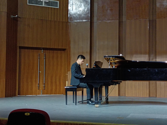 本网讯 6月25日上午十点整,音乐学院教工第二党支部“党史学习教育”系列活动之“献礼中国共产党百年诞辰中国歌曲钢琴即兴伴奏”主题音乐会在音乐学院音乐厅成功举办。此次音乐会也是刘洁老师《钢琴即兴伴奏》课程的教学实践音乐会。正逢中国共产党建党一百周年之际,师生通过音乐会的形式用真挚的情感和歌声演绎着自己对党的百年诞辰的祝贺。其中,《红星歌》、《东方红》、《团结就是力量》等等,皆体现出本次音乐会的主题。最后,以一首《不忘初心》结束本场音乐会。