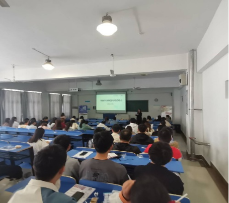 在招聘会上,两家公司的招聘负责人以PPT讲解的方式向同学们分别介绍了两家公司的基本情况、招聘岗位、福利待遇以及晋升途径等同学们较为关心的问题。除此之外,招聘负责人以自身经历为基点向同学们分享自己的心得经验。