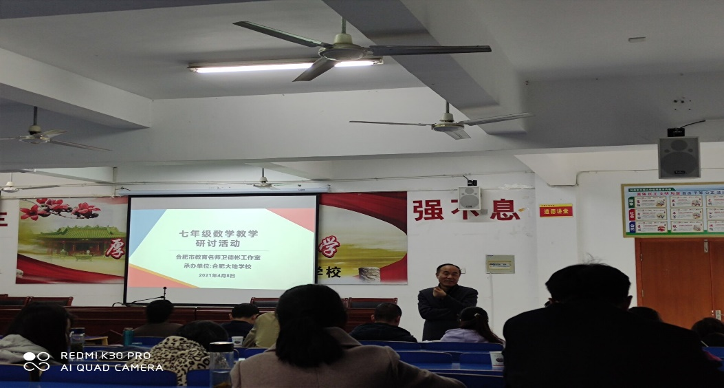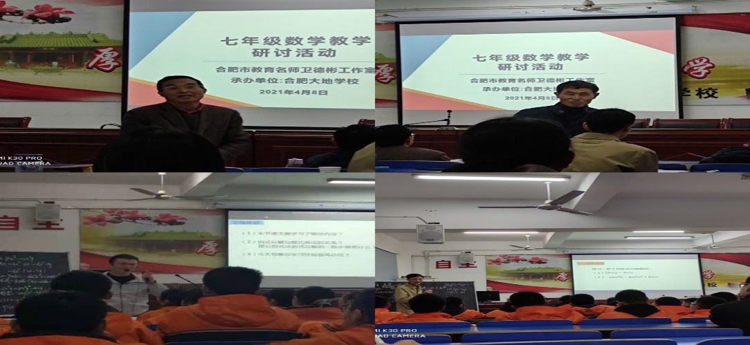 本网讯 4月8日下午,beat365在线唯一官网数学与统计学院在肥西上派初级中学实习的学生聆听了合肥市教育名师工作室中学数学卫德彬工作室在合肥大地学校多媒体教室举办的基于安徽省教育信息技术研究立项课题《基于减负增效的初中数学图形智慧教学实践研究》和《基于云平台数字资源开展“数与代数”混合式教学实践研究》的七年级数学教学研讨活动。参加本次教研活动的人员是来自合肥各中学数学教研组长或骨干教师,并特别邀请beat365在线唯一官网数学与统计学院万家练教授和沈南山教授参加此次活动。