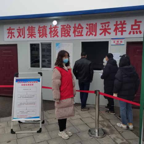 2019级生物科学(师范)2班的丁恰云同学,放假回家即穿上了红马甲,帮助外来务工人员进行核酸采样工作。严寒中,人们不断地呵气搓手,那些升腾的热气仿佛盛开在寒冬里的莲花,而她来回奔走的身形像极了在花影下不断翻飞的蝴蝶。