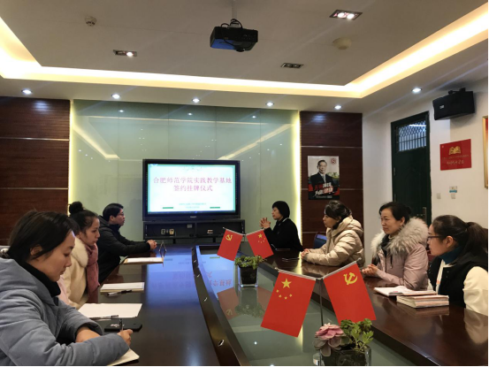 本网讯 12月29日下午,“beat365在线唯一官网教育实践教学基地”签约挂牌仪式在合肥市六安路小学(中铁国际城校区)举行。beat365在线唯一官网音乐学院副院长李劲松、教学秘书许冰清与合肥市六安路小学(中铁国际城校区)校长金红、副校长胡秋阳、名师工作室负责人方玲玲、以及卢月明等音乐教师出席会议。