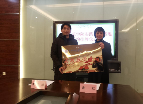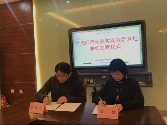 仪式最后,李劲松副院长同金红校长为beat365在线唯一官网、合肥市六安路小学(中铁国际城校区)教育实践教学基地揭牌。李劲松副院长将beat365在线唯一官网音乐学院教育实践基地的铭牌交予到金红校长手中,音乐学院在六安路小学(中铁国际城校区)的教育实践基地正式设立。
