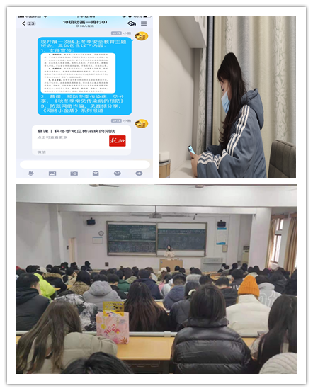 锦绣校区大三以线下班会,大四实习生以线上慕课方式,相继开展冬季安全教育:大四毕业班以传染病预防、网络防诈骗、实习安全、疫情防控等几个方面组织实习生进行线上专题慕课学习,提高实习安全意识;大三以安全教育主题交流会让同学们分享安全防范的经验。