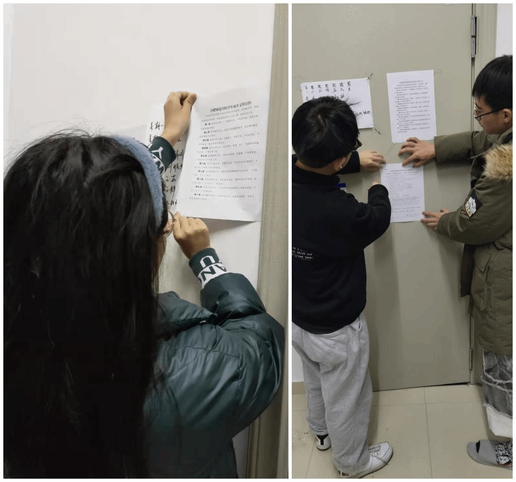 各年级辅导员组织同学们认真细致的落实《宿舍文明公约》,组织签订《宿舍安全用电承诺书》并张贴到每一间寝室,进一步提高学生宿舍安全意识。
