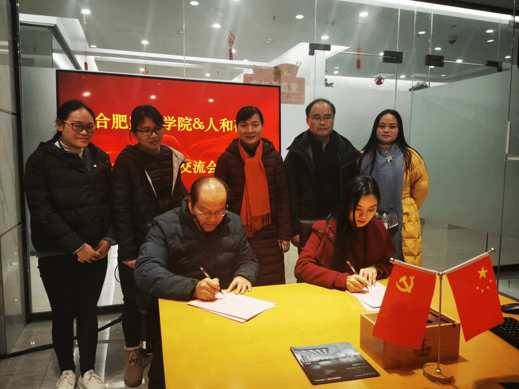 最后,王家正一行与人和集团代表在会议室内洽谈了就业实习基地共建事宜,这是继12月17日下午,安徽人和市场研究咨询有限公司代表来我院开展就业实习合作洽谈达成初步意向后的正式签约。人和集团副总经理刘良进介绍了公司的事业发展和人才需求的相关情况。他表示,安徽人和市场研究咨询有限公司是一家从事第三方评估、调查、咨询的专业服务机构,希望今后能与数学与统计学院在学生就业实习、课程置换、校内实训基地建设、课题研究、师资培养等五大方面开展合作。王家正对人和集团的实习就业共建方案给予了认可,他介绍了学院专业设置、人才培养和实习就业的基本情况。随后,双方就合作细节开展了进一步的讨论。最后,双方签署了就业实习共建协议书并进行了就业实习基地挂牌。