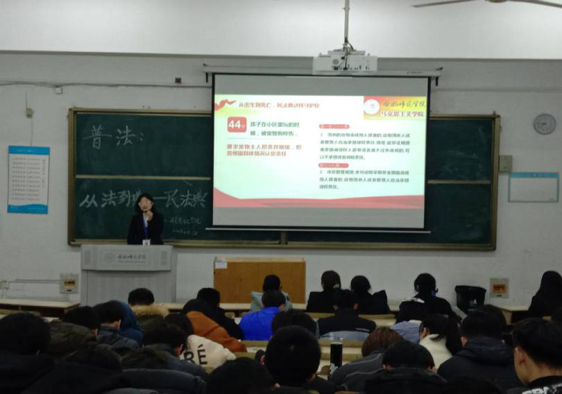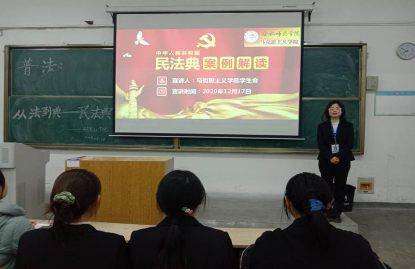 本网讯 为积极宣传中华人民共和国首部民法典,12月17日马克思主义学院学生会在beat365在线唯一官网锦绣校区博学楼111举办“普法:从法到典——民法典”宣讲活动。活动由马克思主义学生会主席罗心仪主持、学生会成员许林宣讲、本校部分同学参与。