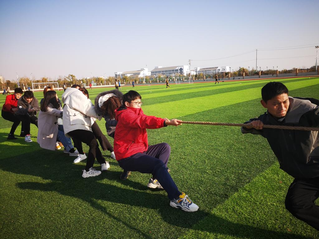 活动前,工作人员提前半小时到场,准备活动用品,布置场地。活动在欢快热烈的氛围中开始,负责人宣布项目规则,现场共进行了7个项目的比拼:5人6足、盲人指路、踩气球、袋鼠跳接力、拔河大赛、盲打、撕名牌。